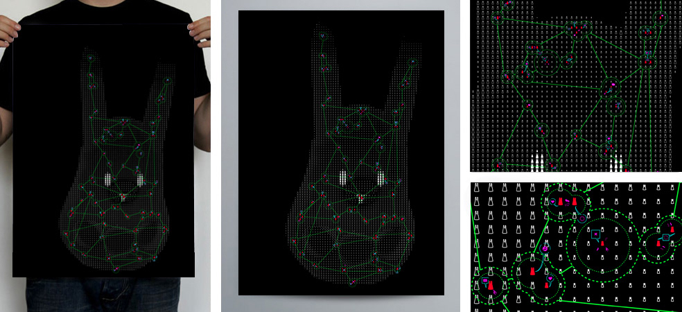 Projet d’affiche pour l’installation « Opéra pour 100 Lapins communicants»