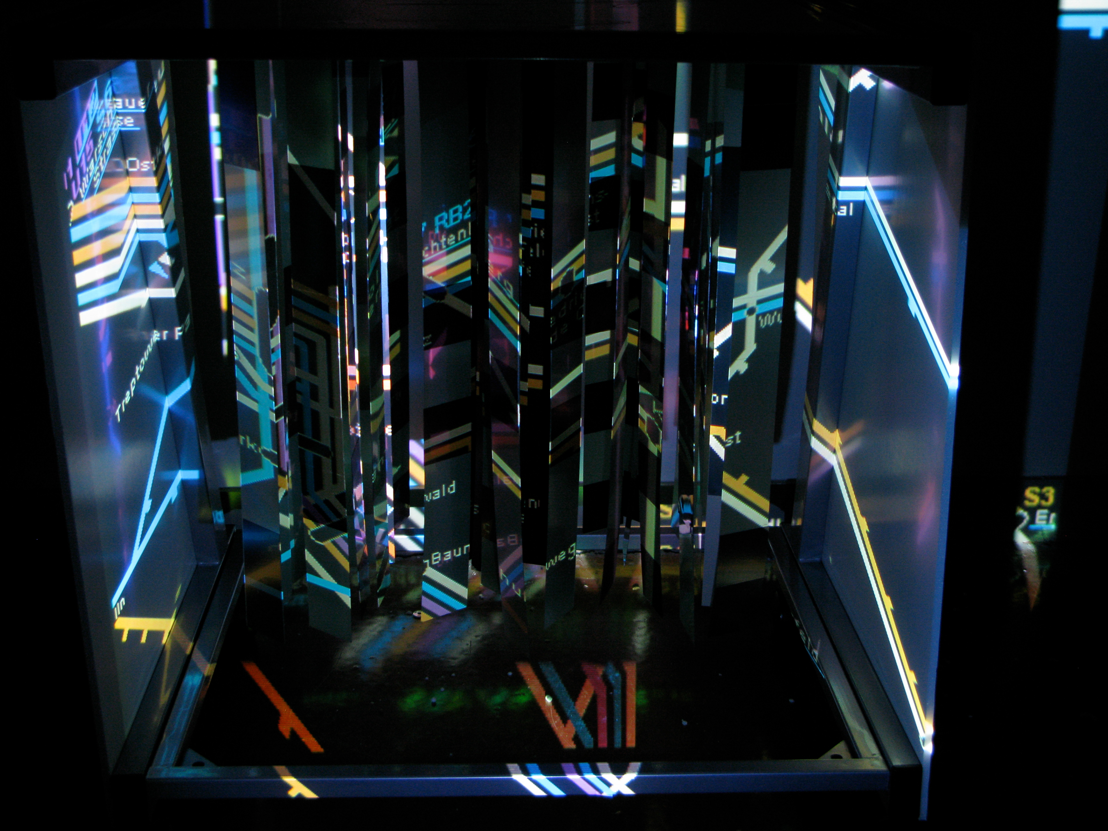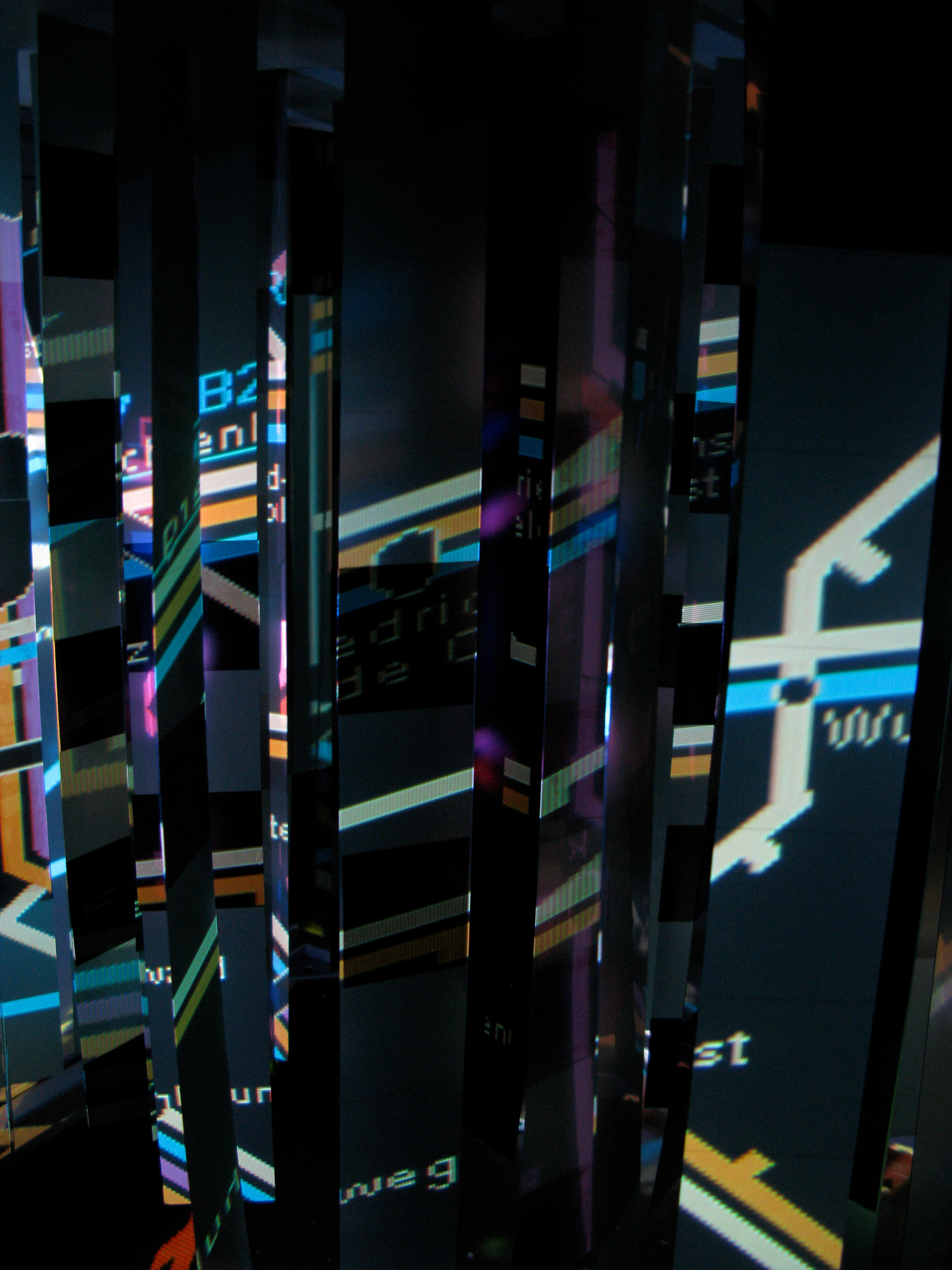 Installation numérique sur le thème des lignes de métro et de sa décomposition.